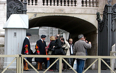 ⑥寺院の出入り口には、ミケランジェロがデザインした服を着たスイス人の衛兵がいた。 | |