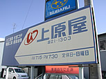 道路からはこの看板が目印です。店舗正面に駐車場をご用意しています。 |