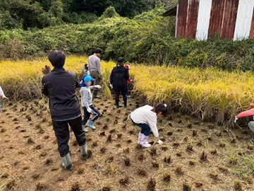 5月に田植えをした田んぼの稲刈りをしました。稲刈り予定日が雨で3度順延して11月の開催となりました。最近の米価格の上昇で更にお米のありがたさが分かったようで、1本の稲穂も拾って大切に扱っていました、さてお味はどうかな?お手伝いいただいた保護者のみなさんありがとうございました