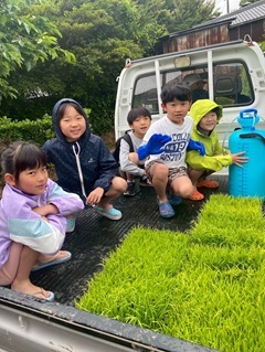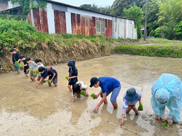 昨年以上の本降りの雨が降るあいにくの天候でしたが田植えを行いました。みんな最初は裸足で入る田んぼに警戒心満載でしたが、慣れるにつれてどろんこに^^2時間程で全部植える事ができました。保護者の方ご協力ありがとうございました。野外体験雨確立多し!秋には稲刈り&BBQを予定しています!